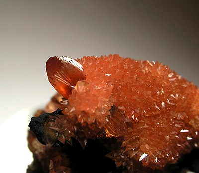 Rob: WOW! This is THE classic old European locality for rhodochrosite and is certainly at least 100 years old, if not 200. It is unusually rich in crystallization and in fact features 2 entirely different habits of rhodochrosite formed in subsequent generations of growth. It is as cute an example as any I have seen, especially without costing a fortune. Specimens from this old locality are virtually unobtainable. ----- Photos courtesy of / ©2004 The Arkenstone
