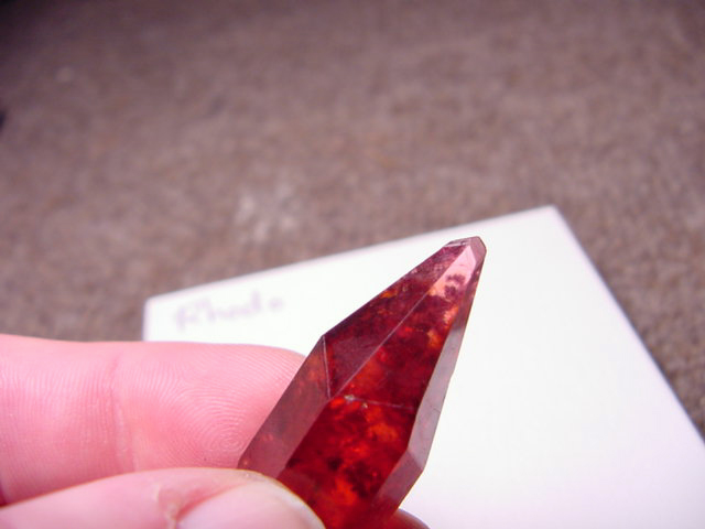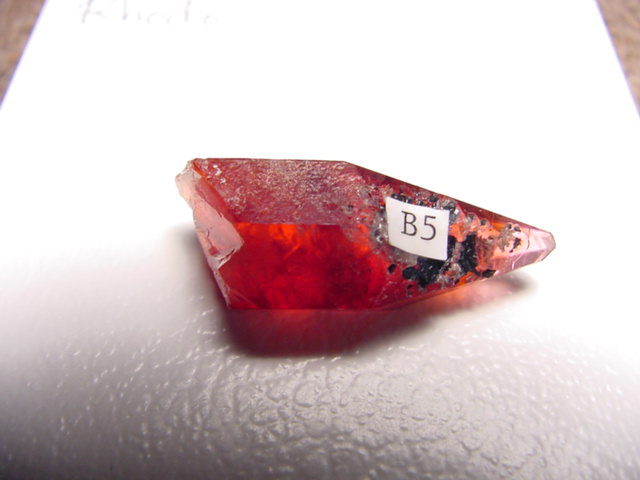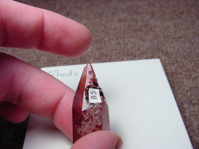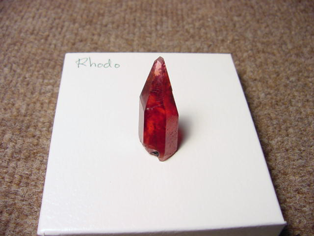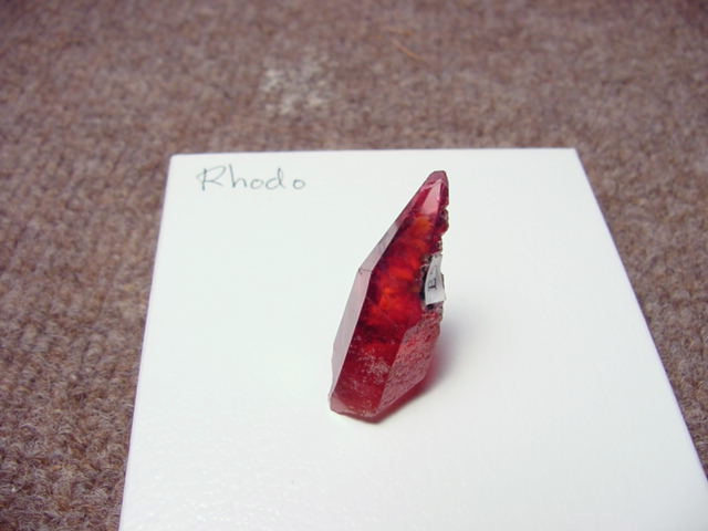 Perfectly terminated 4.0 x 1.5 x 1.5 cm scalenohedral XL. The crystal has sharp faces and a very fine bright deep red color. The piece was improved by removing some matrix from the back of the XL. Ex. F. John Barlow #B5