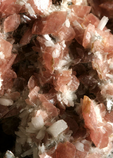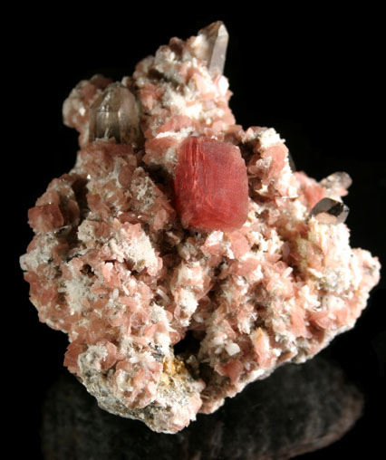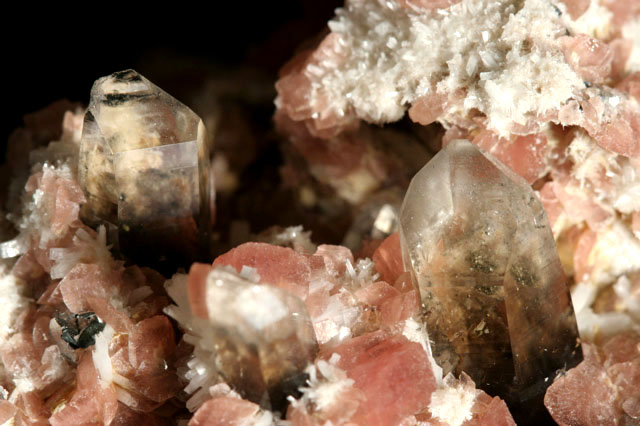 Rhodochrosite with Bertrandite and Smokey Quartz