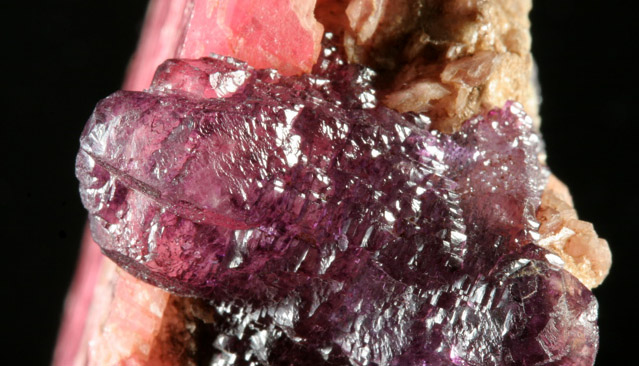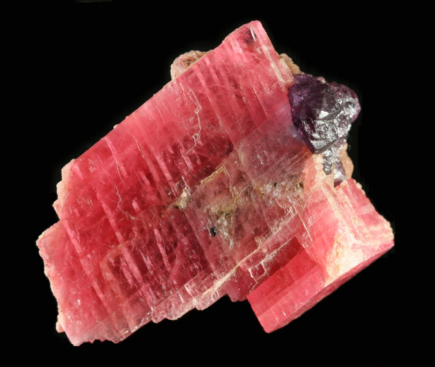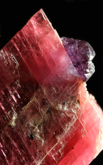 With Larry Conklin Label (marked RN473 in pen on the back): an extremely rare, large, rhombohedral crystal with a little purple fluorite ----- Photos ©2006 Richard Geiger
